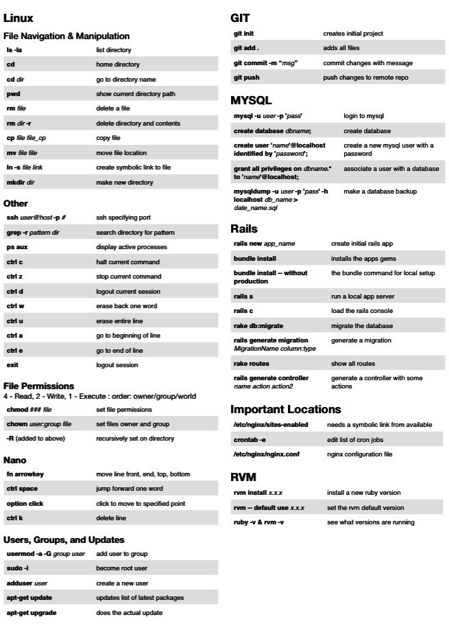 Linux, MySQL, Git, Nginx, RVM, and Rails Reference